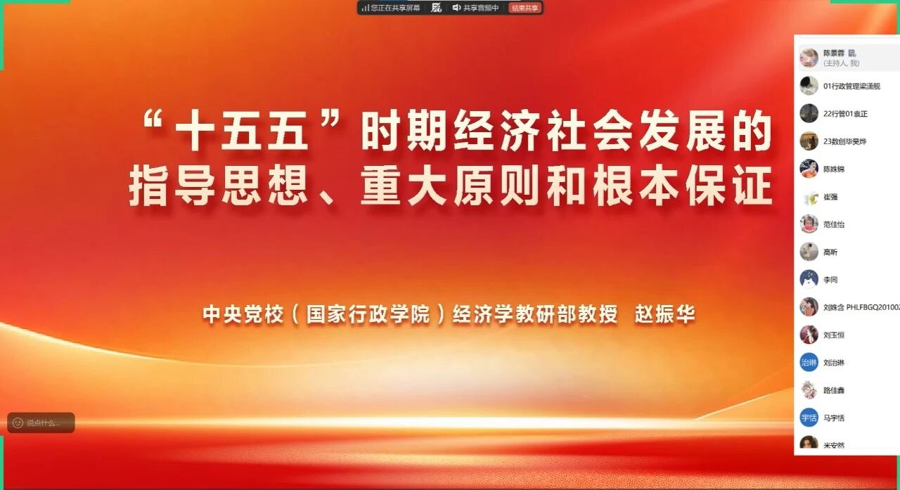 本次学习活动以线上会议形式,组织全体学生党员集中观看专题课程视频,课程围绕“十五五”时期经济社会发展的指导思想、重大原则、根本保障及重大战略任务展开。学习过程中,全体学生党员全程专注观看,跟随专家解读,系统把握“十五五”时期的发展蓝图与战略部署,并进行了积极的交流与分享。