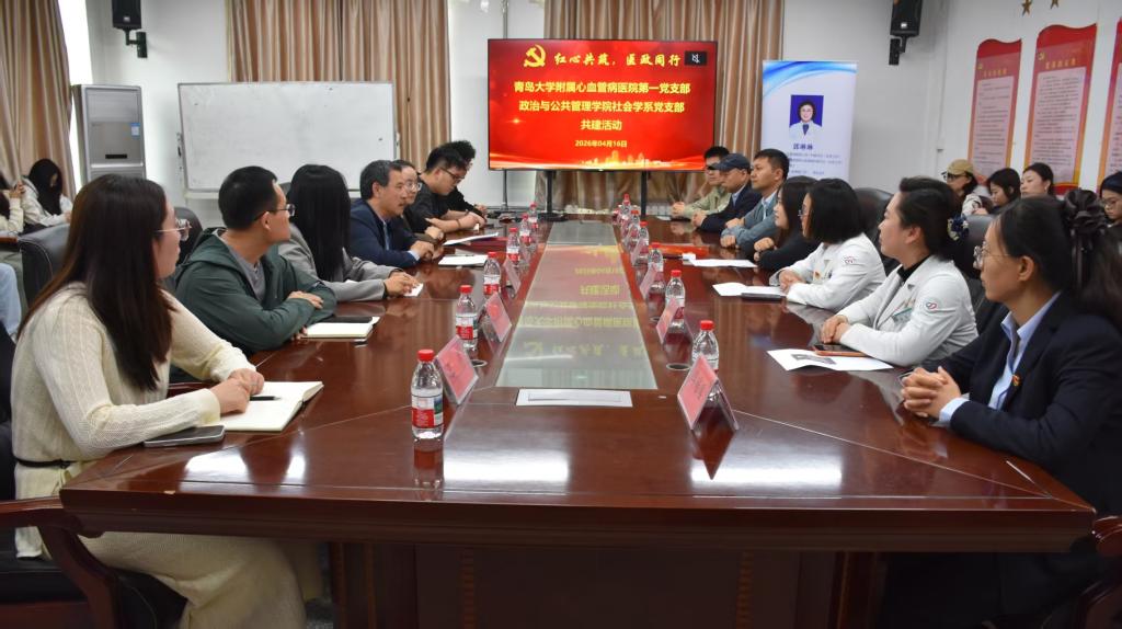 附属心血管病医院第一党支部在金家岭校区二号实验楼214会议室举行支部共建活动,以实际行动服务“健康中国”建设,推动学科发展与医疗实践深度融合。活动由学院党委副书记徐伟主持,附属心血管病医院纪委书记韩淑春、第一党支部书记郭琳琳,学院党委书记尹文博、社会学系党支部书记石腾飞、院长助理李海荣及双方师生代表40余人参加。