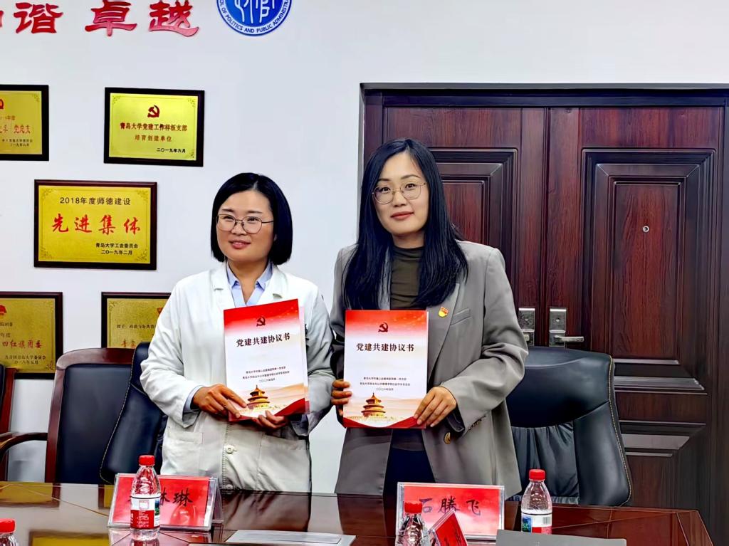 签约环节,石腾飞与郭琳琳共同签署《党支部共建协议书》,正式建立长期共建关系。未来,双方将以此为纽带,依托专业优势与医疗资源,同向发力,实现专业人才培养与医疗健康服务的协同发展。