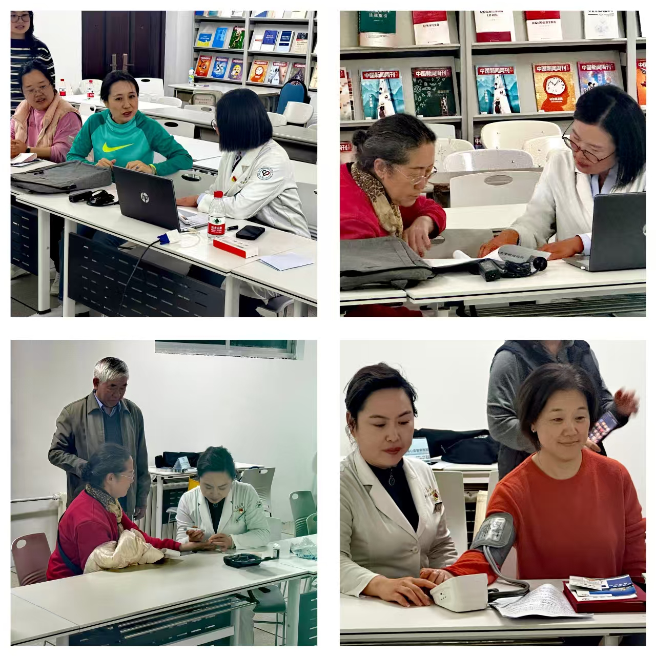 健康义诊环节,医院专家团队为师生提供血糖血压测量、心电图及解读体检报告等服务。针对师生们关心的血压控制、日常保健等问题,专家结合现场检查数据,一对一答疑,个性化制订健康调理方案,真正形成一站式健康指导服务。